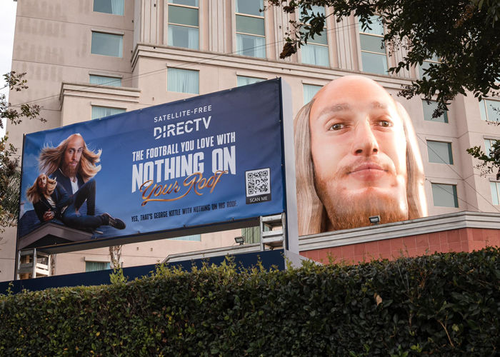 For DIRECTV’s Nothing on Your Roof tailgate event next to Levi’s Stadium, we created a 30-foot inflatable head of George Kittle. The massive replica featured his signature hairstyle, beard, and eyes, making it instantly recognizable to 49ers fans. Placed in a high-traffic area near the stadium, the inflatable became a standout attraction, drawing crowds for photos and social media posts. As part of DIRECTV’s campaign, it emphasized their message in a bold and creative way, engaging fans while adding to the excitement of the pre-game festivities.